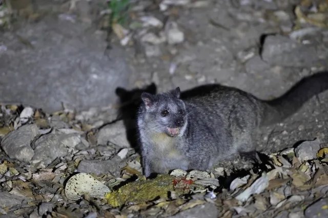 鼻筋に白い線があるのが特徴で、木登りが得意。甘いものが大好きで、いちごは特に好物です。夜行性で、夜間にビニールハウスやネットのわずかな隙間から侵入します。いちごをきれいに食べつくすことが多いですが、噛み砕いた果肉や皮をその場に残すこともあります。ビニールを破って侵入するケースも報告されています。