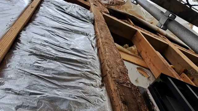 築15年の住宅にお住まいのご夫婦から「洗面所の床が沈む感じがする」とのご相談を受けました。さっそく床下を点検すると、洗面所の湿気が原因で床下の土台部分がシロアリに食害されており、支えとなる木材が空洞化していました。被害が進行していたため、床の全面補修と構造材の交換が必要となり、高額な修繕費がかかる事態に。ご本人も「もっと早く点検していれば防げたのに」と後悔されていました。湿気がこもりやすい水回りは、特に注意が必要です。