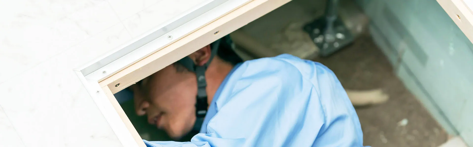 ■高所作業:コウモリ、ハクビシン、アライグマなどは高所での駆除・侵入口封鎖作業を行います。